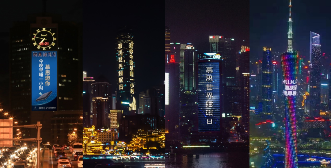 在3月17日的白皮书发布活动上,中国睡眠研究会、慕思与人民网科普共同发起了“今晚早睡一小时”健康睡眠公益活动。同时,在世界睡眠日期间,点亮北京“国门第一屏”、上海外滩、重庆新地标、广州小蛮腰同主题灯光。