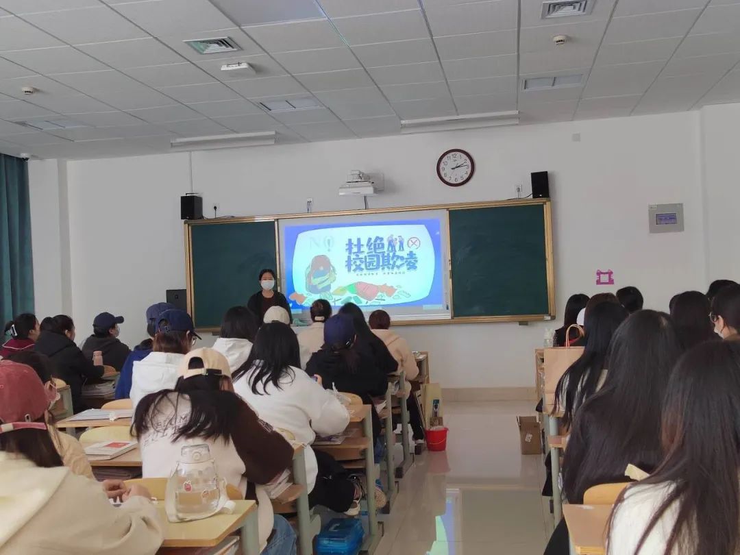 本次班会围绕“防校园欺凌”展开。首先,各班辅导员深入、细致地讲解了校园欺凌给受害者带来的伤害及严重后果,向同学们讲解了有关校园欺凌、校园暴力的常识。随后,各班级同学结合具体案例,深入了解了校园欺凌的范畴、校园欺凌会造成的危害、应对校园欺凌和暴力得的措施等问题。