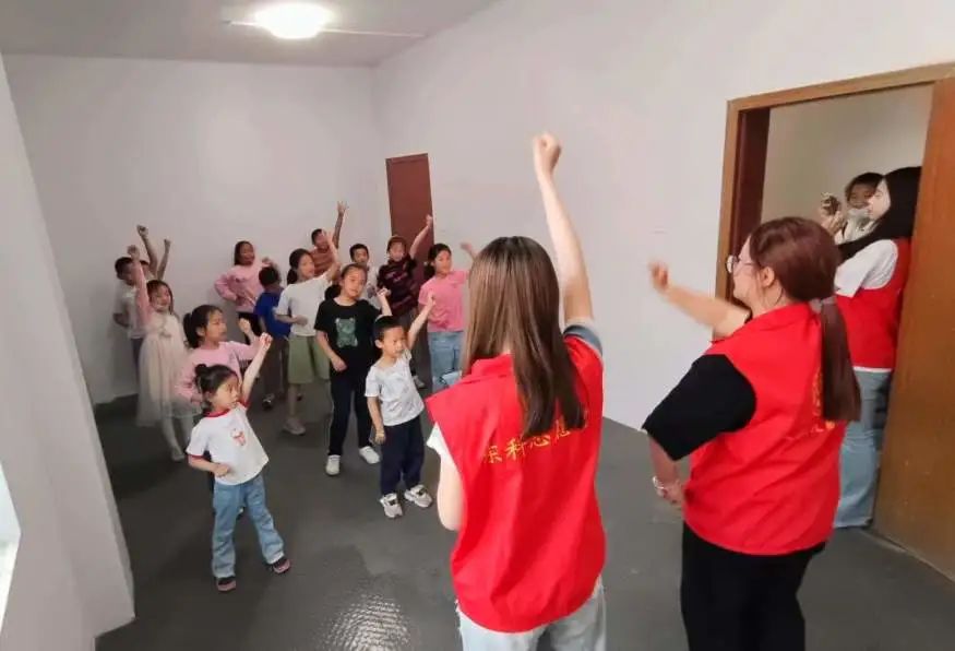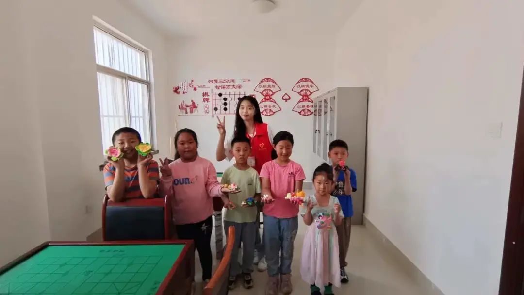 5月14日上午,公司4名青年志愿者来到柳家村,为15名孩子上了两堂精彩生动的艺术课。