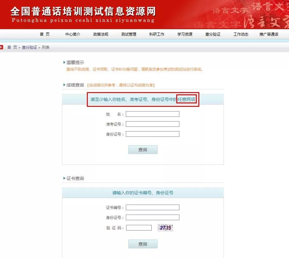 请至少输入你姓名、准考证号、身份证号中的任意两项