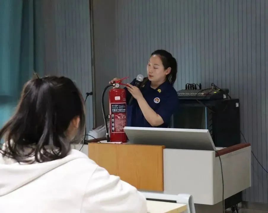 讲座开始后,县消防大队参谋带领同学们观看近几年高校发生的火灾现场以及对于在宿舍中正确用电、安全用电,不私拉电线等注意事项,并且讲解了灭火器的正确使用方式。讲座结束后,在县消防大队的带领下公司组织员工会、自管会干部进行了对灭火器的讲解和使用。