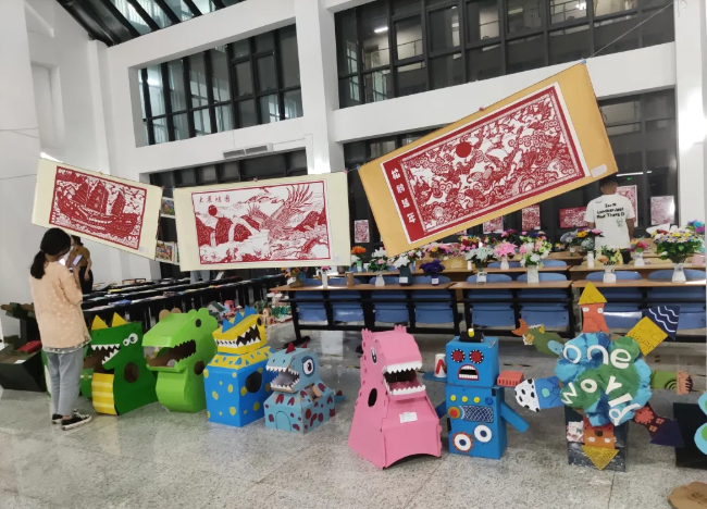本次活动收到全院同学优秀作品,员工参与度高,展出的都是同学们平时的美术课堂作业种类丰富,包括创意儿童画、手工制作、剪纸、国画等不同种类,参展的绘画,作品主题鲜明,内涵丰富,画法和手工制作,挥洒自如。作品集思想性,艺术性,观赏性于一体,导向正确,各具特色。当你进入大厅,仿佛进入到一个梦幻而美妙的美术馆,你会看到同学们大胆的用色和娴熟的绘画技巧。