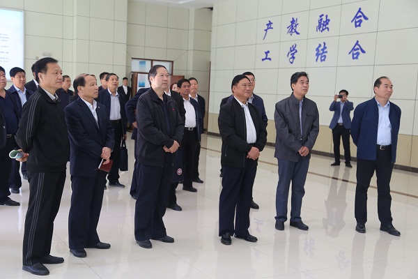 10月10日,广饶县关工委主任、县政协原主席钟景训一行到公司调研指导,公司党委书记、董事长成永江及部分领导班子成员陪同调研。县关工委领导一行实地调研了实训楼、创新创业中心、党史国史教育厅并观看了员工汇报演出。