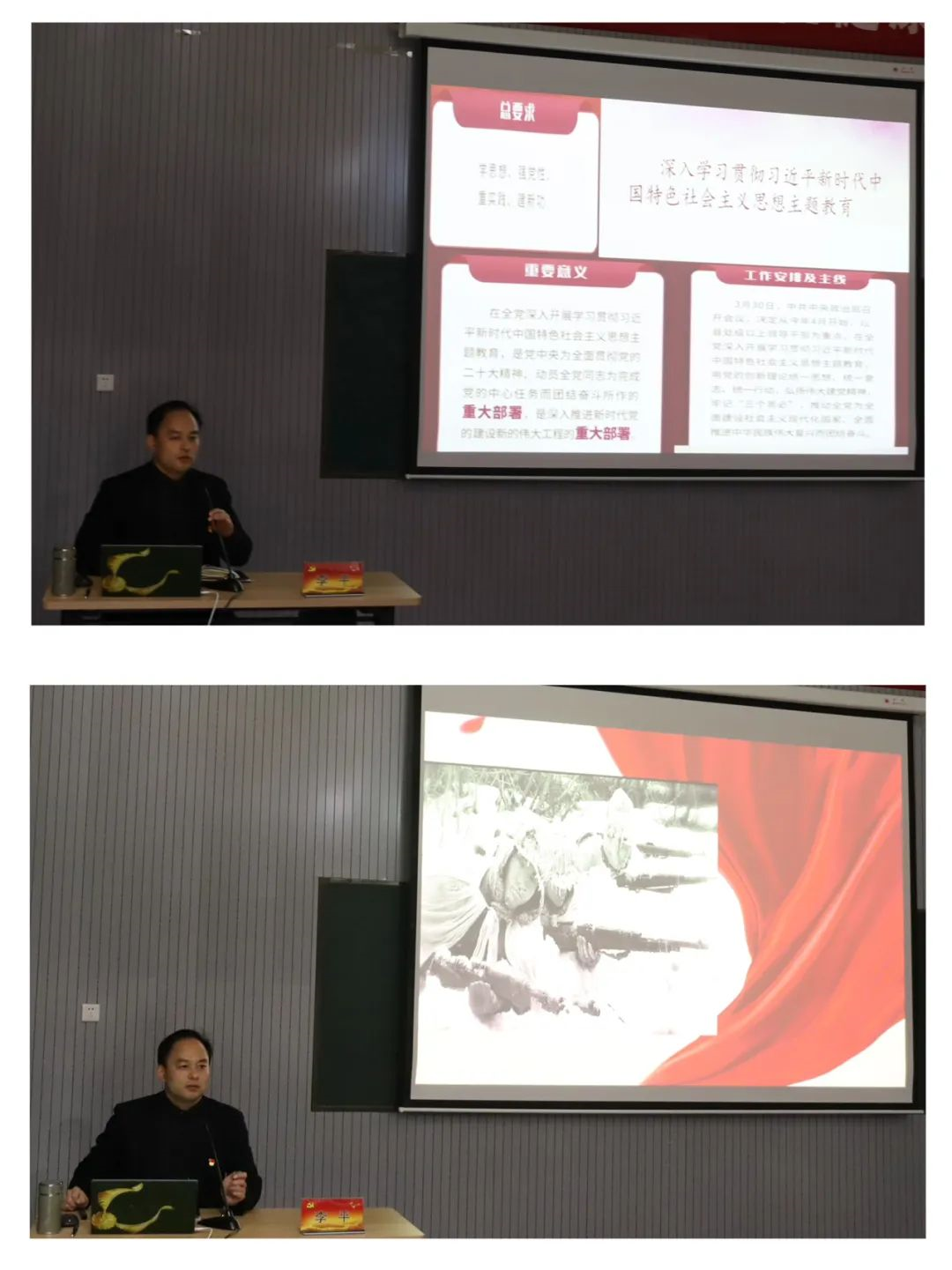 为传承红色基因,延续红色使命,加强对青年员工的思想引导和教育管理,2023年12月7日晚,公司党支部书记李平作主题教育专题党课。他强调,同学们作为新时代青年要更加全面地认识到应担起的重任、应发扬的精神、应培养的品质。先辈们流血牺牲无私奉献的精神如同永恒照耀前途的指明灯,将引领着同学们奋力奔跑于新的征途。李平以“冰雕连”的故事开场,从朝鲜战争的历史背景、抗美援朝出兵的决策过程、战争胜利的意义三个方面,带领现场师生一起回顾了那段艰难岁月,展现了在中国共产党的坚强领导下,中国人民志愿军英勇顽强,最终夺取伟大胜利的艰辛历程。