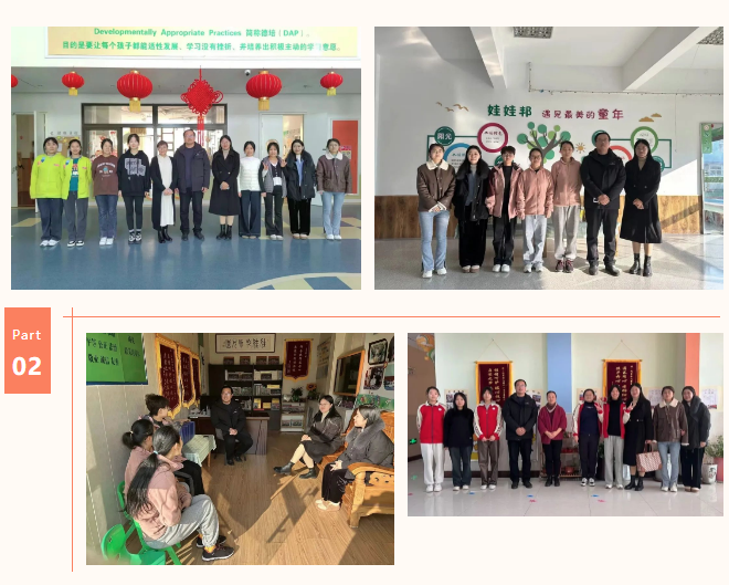 为深入了解2024届毕业生实习情况,提高人才培养和岗位实习质量,加强公司对实习员工的人文关怀,助力员工成长成才。12月26日,公司领导带队,兵分两路赴东营市幼儿园走访调研,看望公司在岗实习的员工。在各幼儿园负责人的陪同下,公司领导教师参观了幼儿园的班级活动室、功能馆室和户外活动区域,深入了解幼儿园的办园情况;并和公司在岗实习员工展开座谈交流,了解他们的工作状态,及在教育实践中遇到的困难和问题,给予他们必要的支持和帮助。员工们也表示,感谢公司和幼儿园提供了此次宝贵的实习机会,使原本在校园内学习的专业知识和技能,在实习中得以应用和提升。