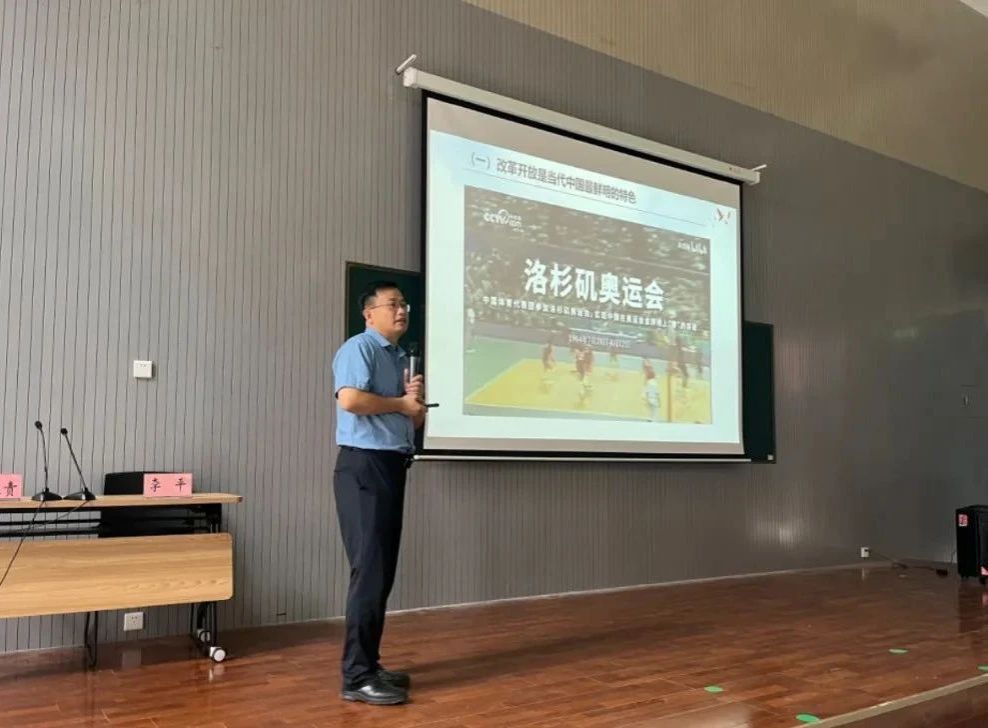 刘农责以通俗易懂的语言讲述了自新中国成立以来,在历届国家领导人的正确指引下中国的改革创新历程,同时辅以生动鲜活的案例,让在座的师生感受到了大国之崛起发展。他强调,党的二十大报告把科技、教育、人才定位于社会主义现代化建设基础性、战略性支撑这一重要地位并强调科技创新在我国现代化建设全局中居于核心地位。希望在座的青年老员工深埋爱国主义种子,勇担时代赋予的责任使命。