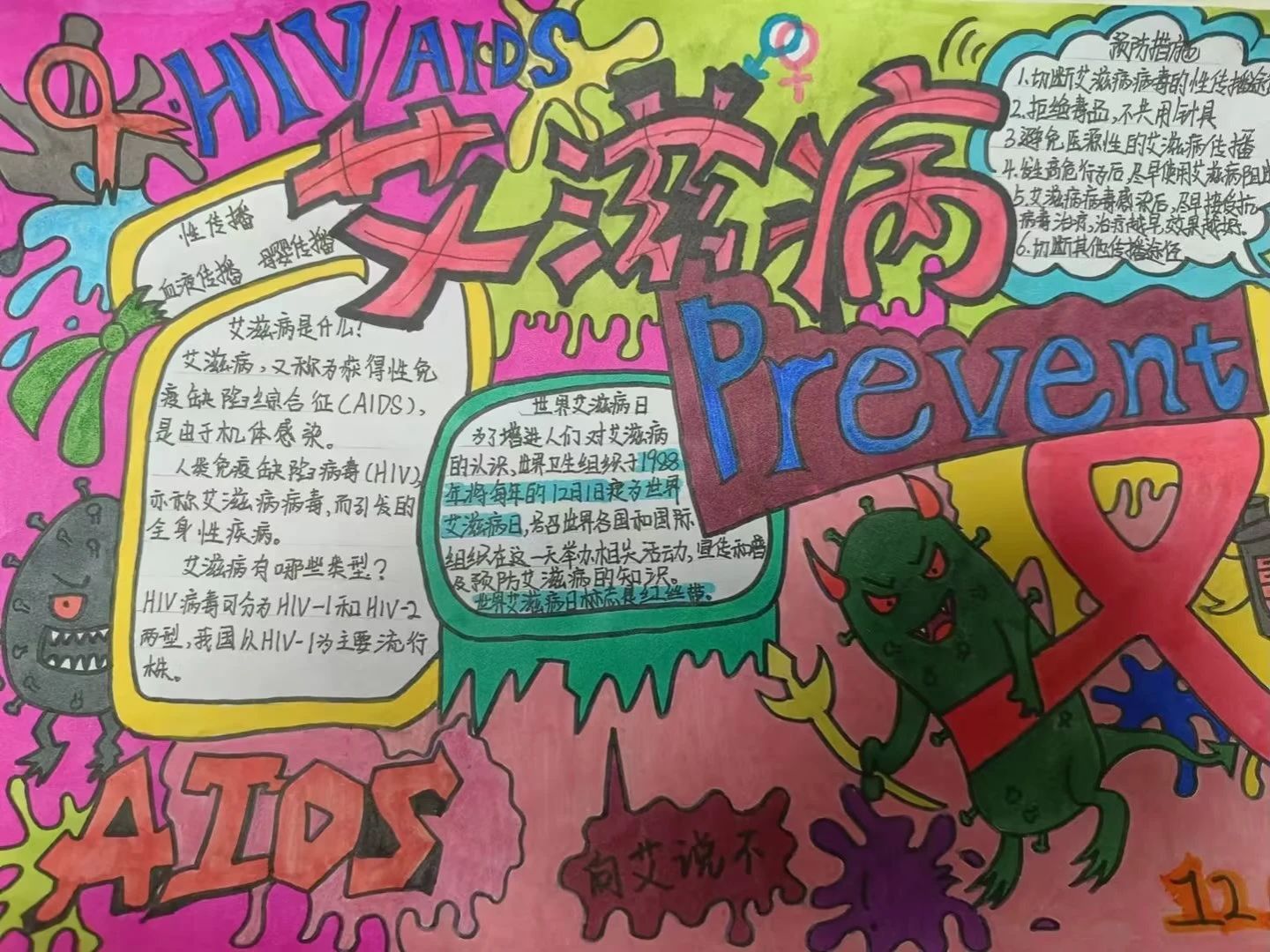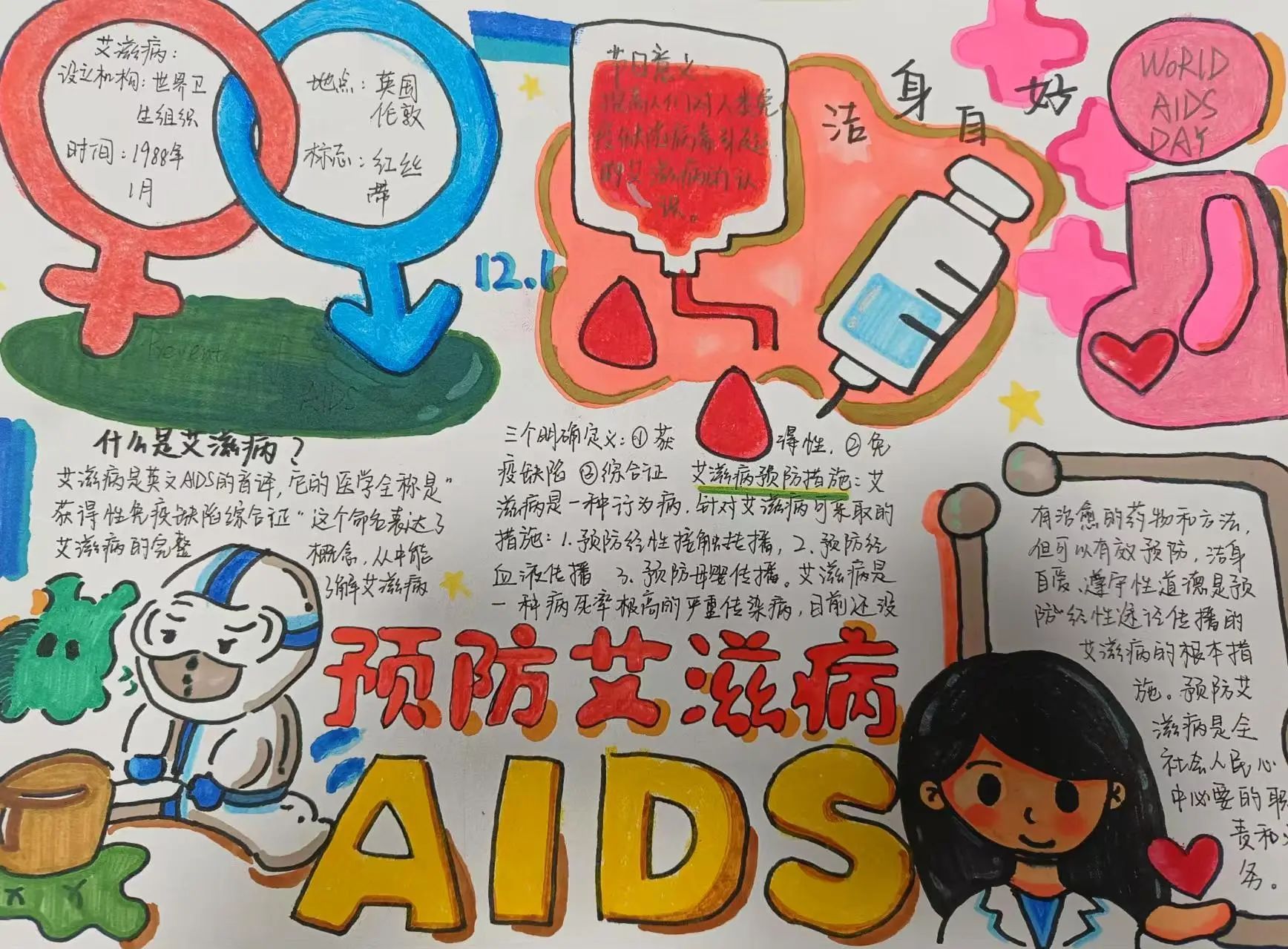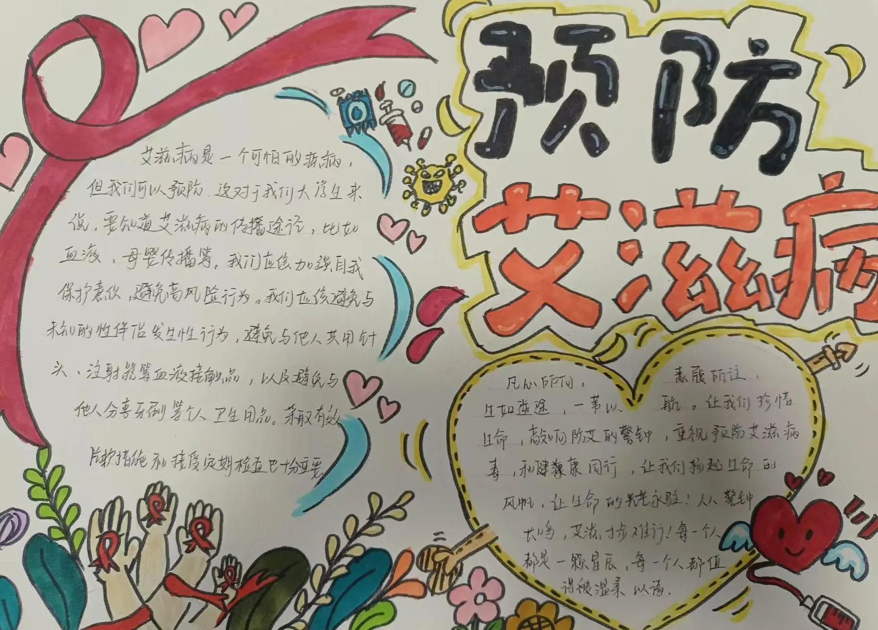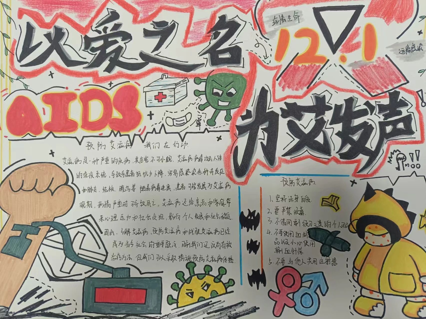 12月1日,绘艺美工社充分发挥自己的艺术才华和创意想象,设计并制作了一系列以艾滋病防治为主题的手抄报。这些手抄报内容丰富、形式多样、色彩鲜艳,既展现了艾滋病防治的相关知识,又传递了积极向上的生活态度和防艾正能量。