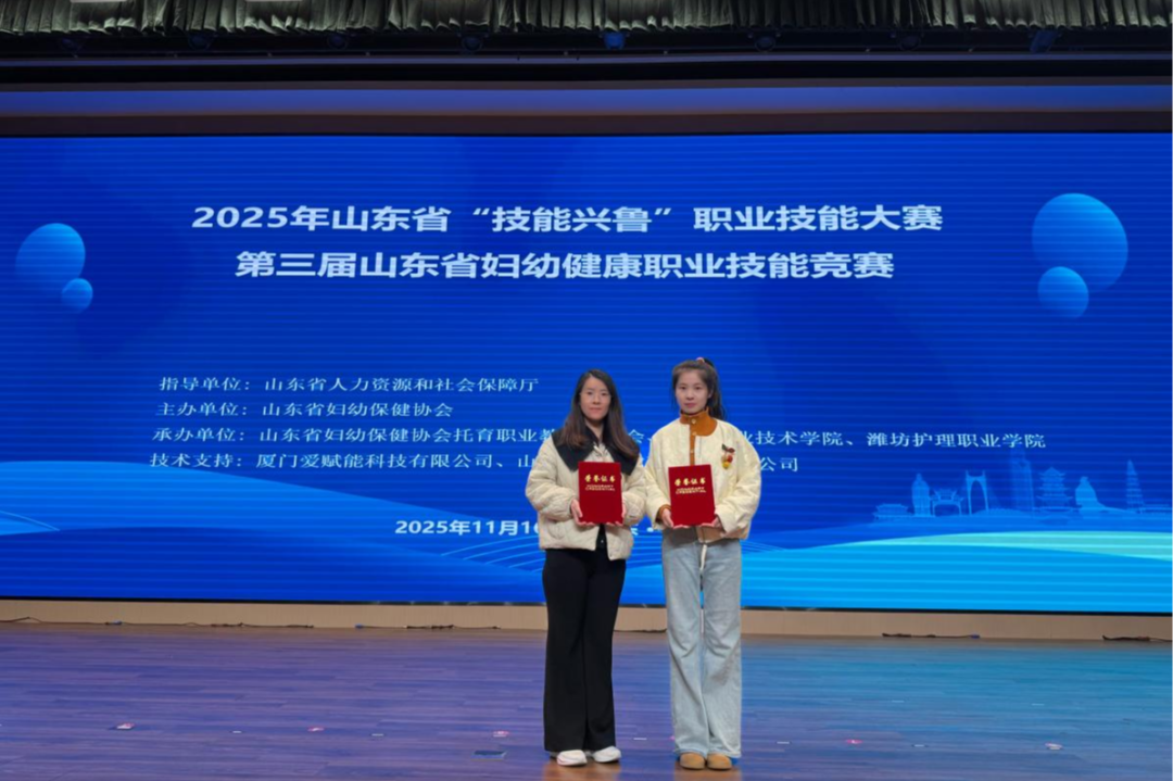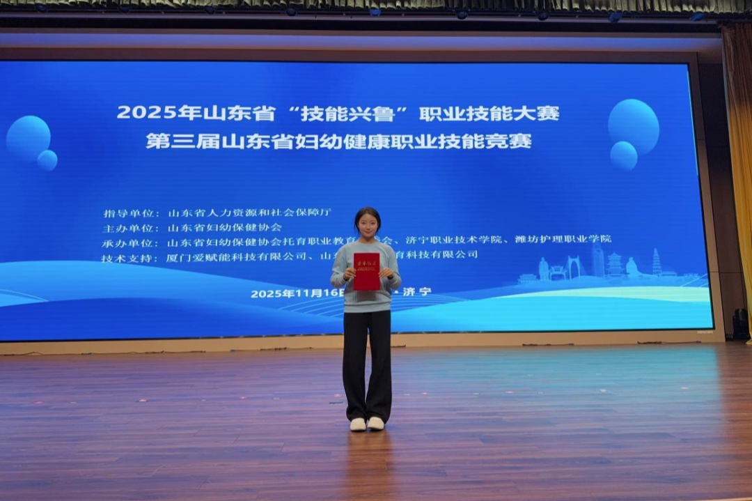 11月16日,2025年山东省“技能兴鲁”职业技能大赛第三届山东省妇幼健康职业技能竞赛落下帷幕,2025级员工王思琦获得育婴员赛项员工组二等奖,教师高倩倩、孙君玲分别获得婴幼儿发展引导员赛项职工组三等奖。
