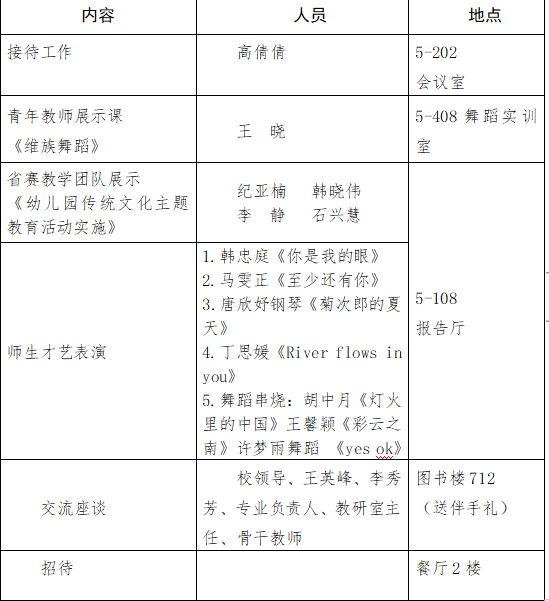 高蒙蒙老师讲解介绍—206手工实训室(可进入参观)—208美术教育实训室(可进入参观)--二楼西楼梯往三楼走—308钢琴实训室(可进入参观)—东楼梯上408舞蹈实训室(王晓老师20分钟教学展示)
